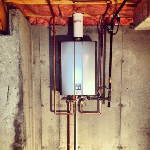 Here is a new Rinnia high efficient on demand water heater that was installed to replace an old 50 gallon tank type.