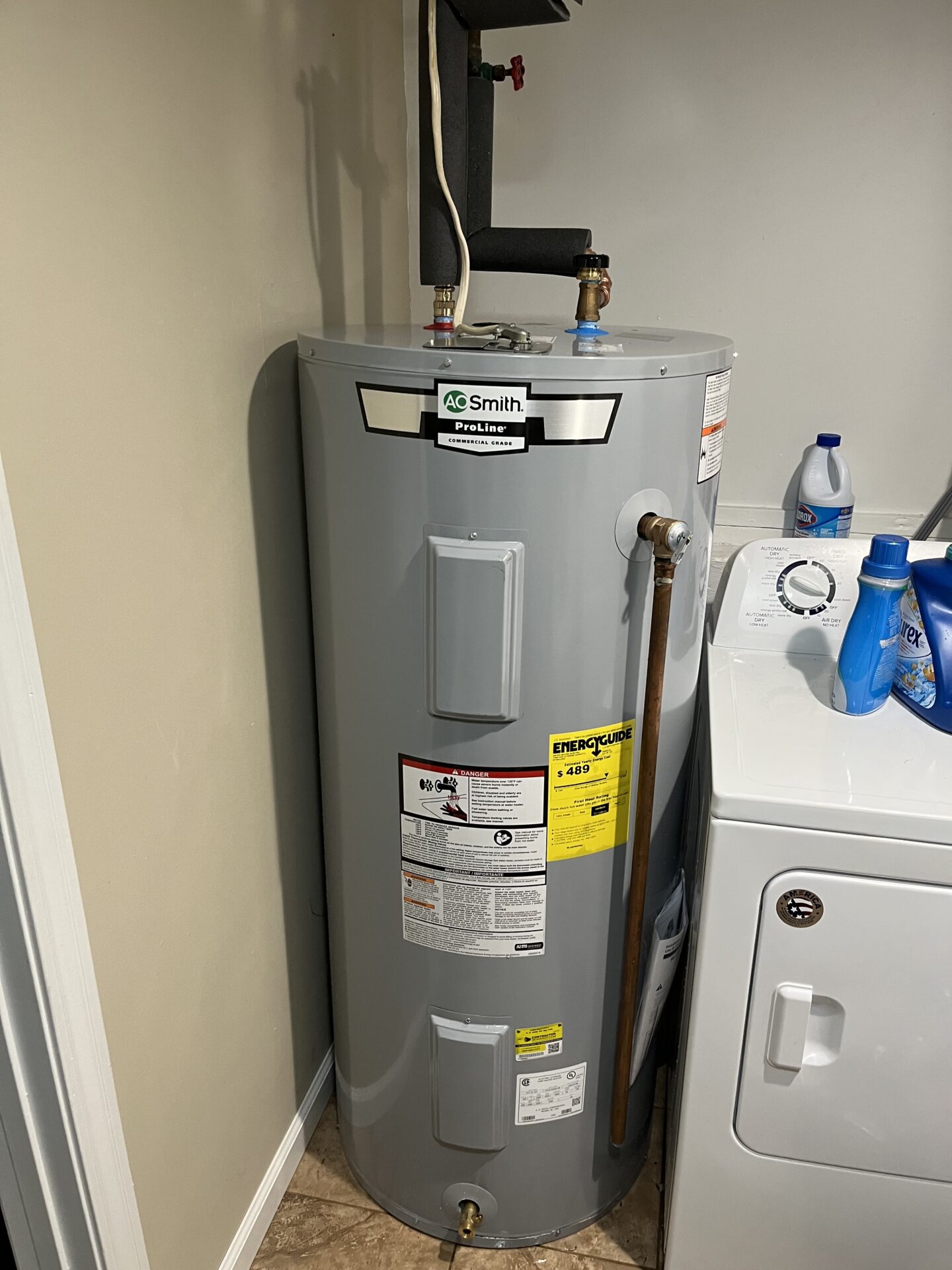 Our technician just installed this AO Smith 50 gallon electric hot water tank in a very tight space in Framingham MA. Our team responded with a same day replacement. Our work was professional, prompt and detailed. Call us for a quote if you are in need of a replacement tank in the Metrowest area. All of our replacements include removal and disposal of the old equipment.